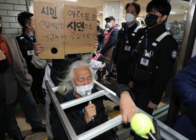 전장연 이틀째 지하철 시위 예산 반영 약속하면 중단 연합뉴스